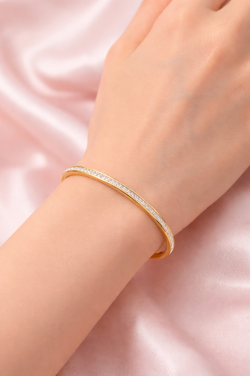 Sleek diamond crystal bracelet with anti-tarnish shine—perfect for everyday elegance.
