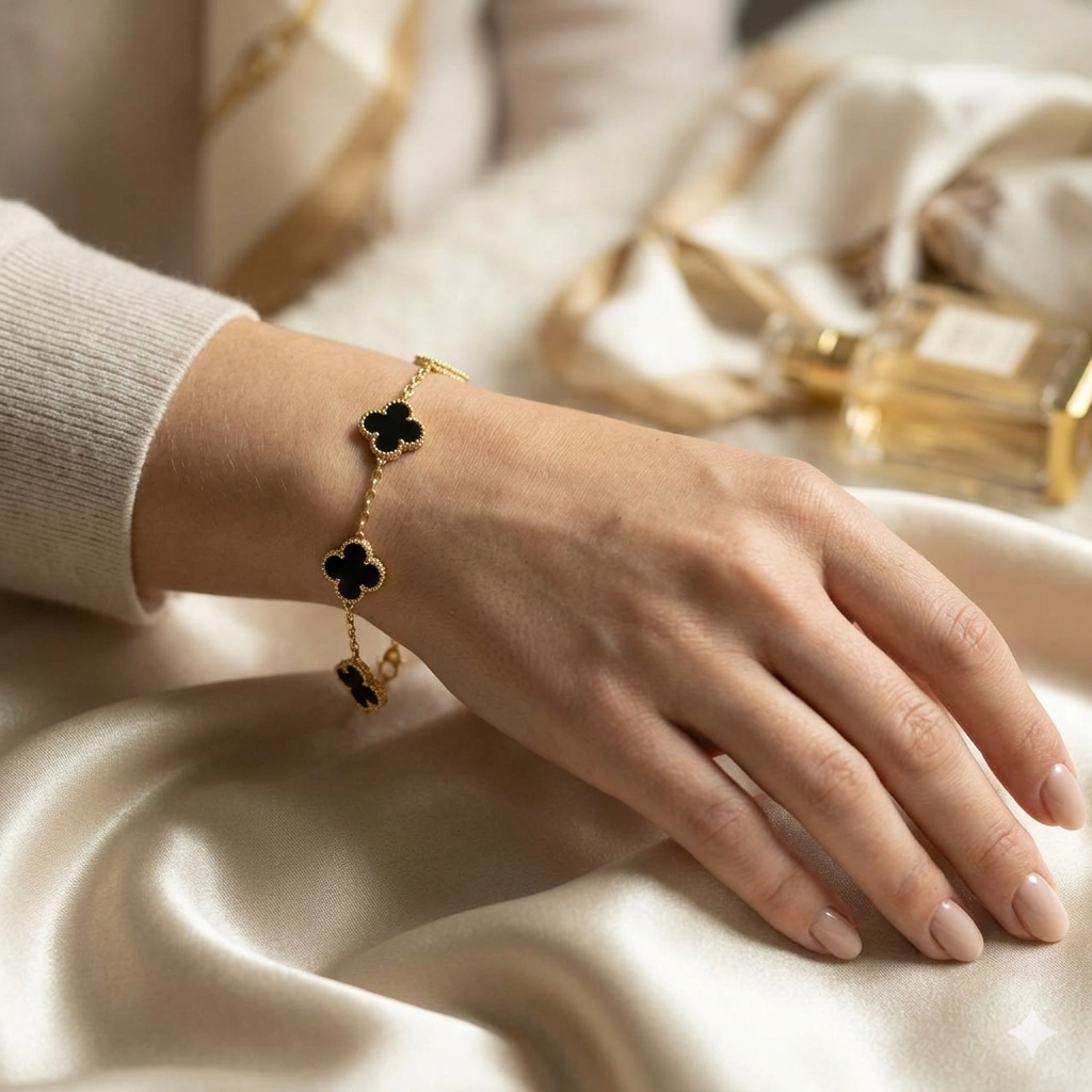 Elegant clover bracelet with anti-tarnish finish—adds a touch of charm and lasting shine.